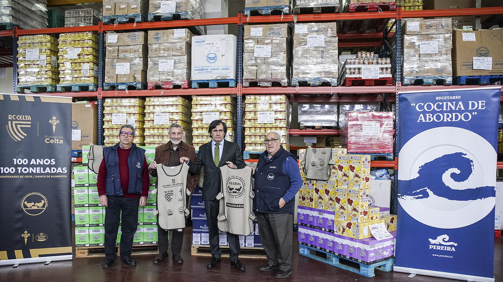 ‘‘100 Anos – 100 Toneladas’, a ambiciosa campaña de recollida lanzada hai unhas semanas pola Fundación Celta e o Banco de Alimentos de Vigo con motivo da celebración do Centenario do RC Celta, recibiu un importante impulso grazas á colaboración do Grupo Pereira, que doou 500 quilos de conservas e galletas da súa marca Biscuits Galicia.