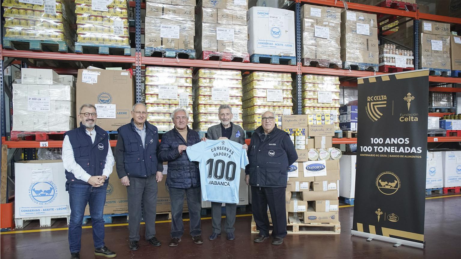 La empresa gallega Conservas Daporta se sumó hoy a la campaña ‘100 Anos – 100 Toneladas’ con una importante y meritoria donación para esta iniciativa solidaria organizada, con motivo de la celebración del Centenario del RC Celta, por la Fundación Celta y el Banco de Alimentos de Vigo.